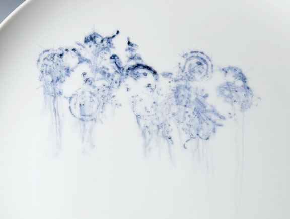 11" x 11", porcelain, glaze and china paint